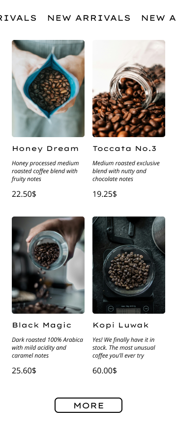 • ‘About Us’ for learning more about the roastery, its values, and the team behind it.