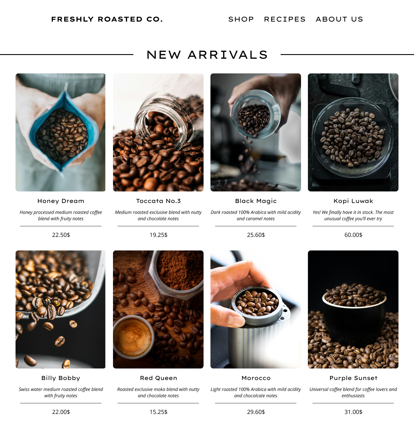 The Freshly Roasted Co. website design is in progress; stay tuned for future updates.