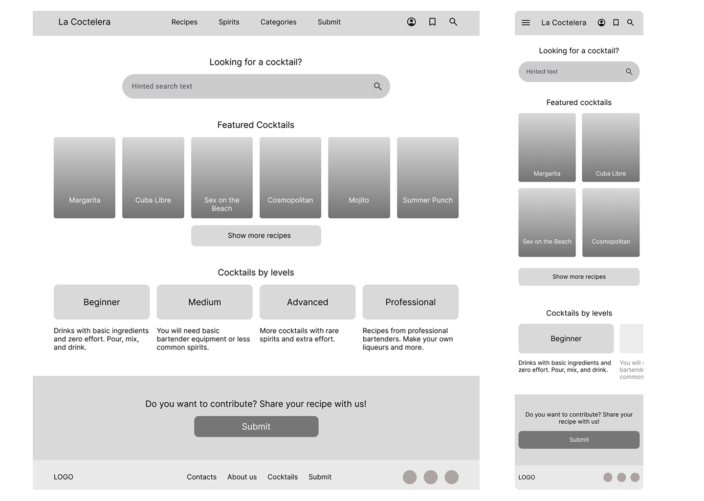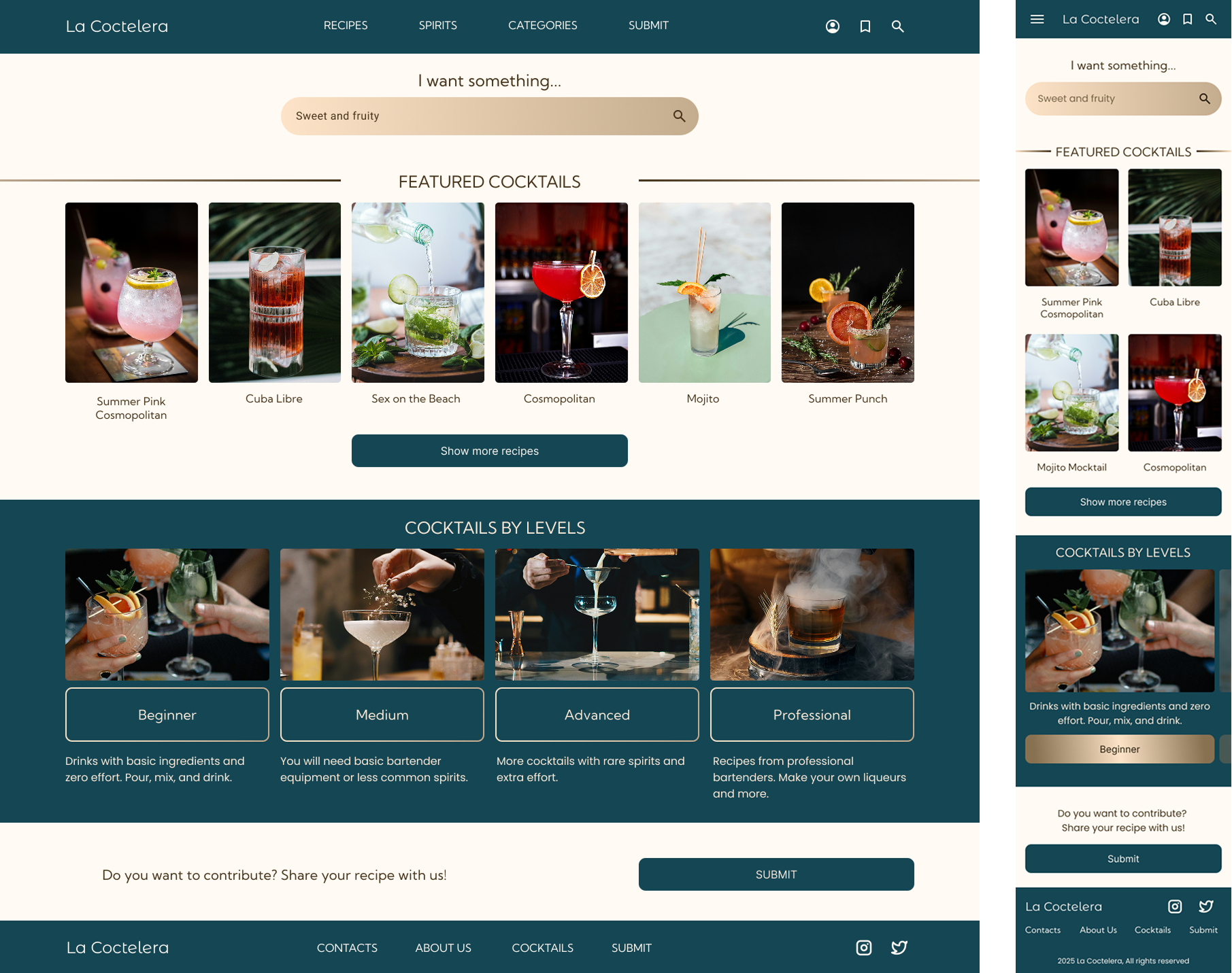 La Coctelera website Homepage. Desktop and mobile layout versions.