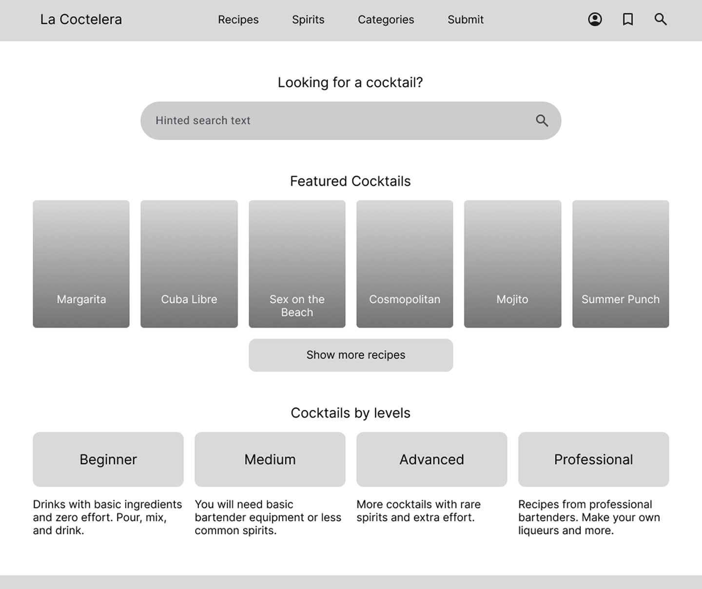 By prioritizing the search bar and showcasing the “Cocktails by Levels” category on the homepage, I aimed to enhance the user discovery process.