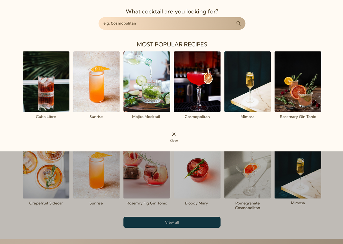 - It was unclear to users whether the search bar was limited to cocktail names or if it also supported searches by taste and ingredient.
